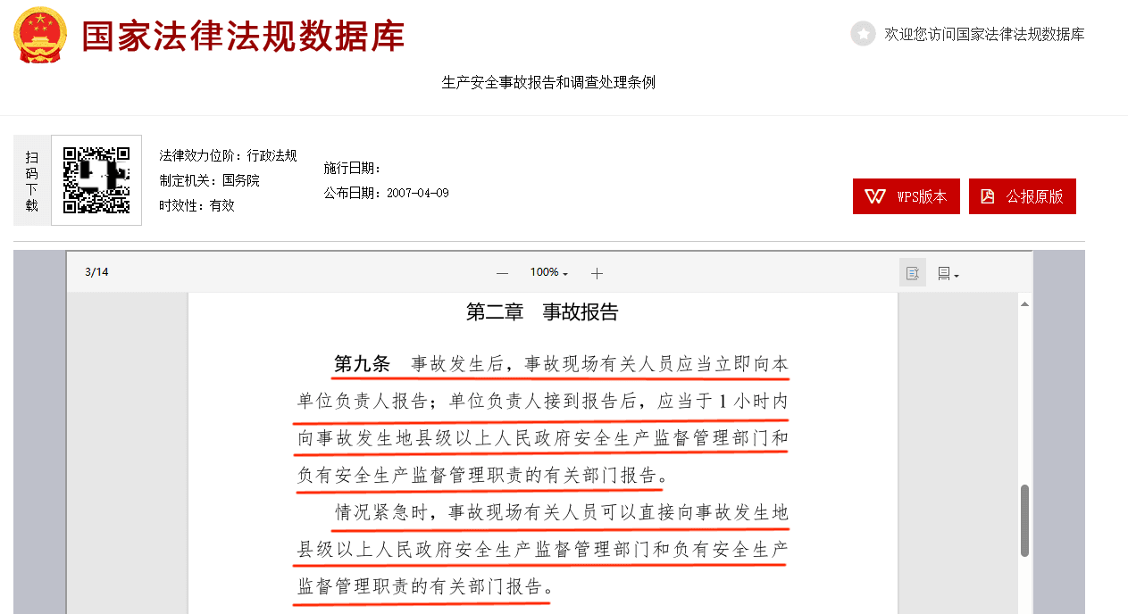 在發生事故后,大家第一反應肯定是,采取自救,盡量減少人員傷亡或者財產損失,然后再去向負責人報告。這個做法其實是錯誤的!正確做法應該是,在事故發生后,需要立刻向負責人上報,負責人需要在一小時內,向縣級以上的安全生產監督管理部門報告。情況緊急的時候,事故的現場人員,也是可以直接向縣級以上的安全生產監督管理部門報告。這里大家可以參考《產安全事故報告和調查處理條例》第九條,里面有詳細說明。